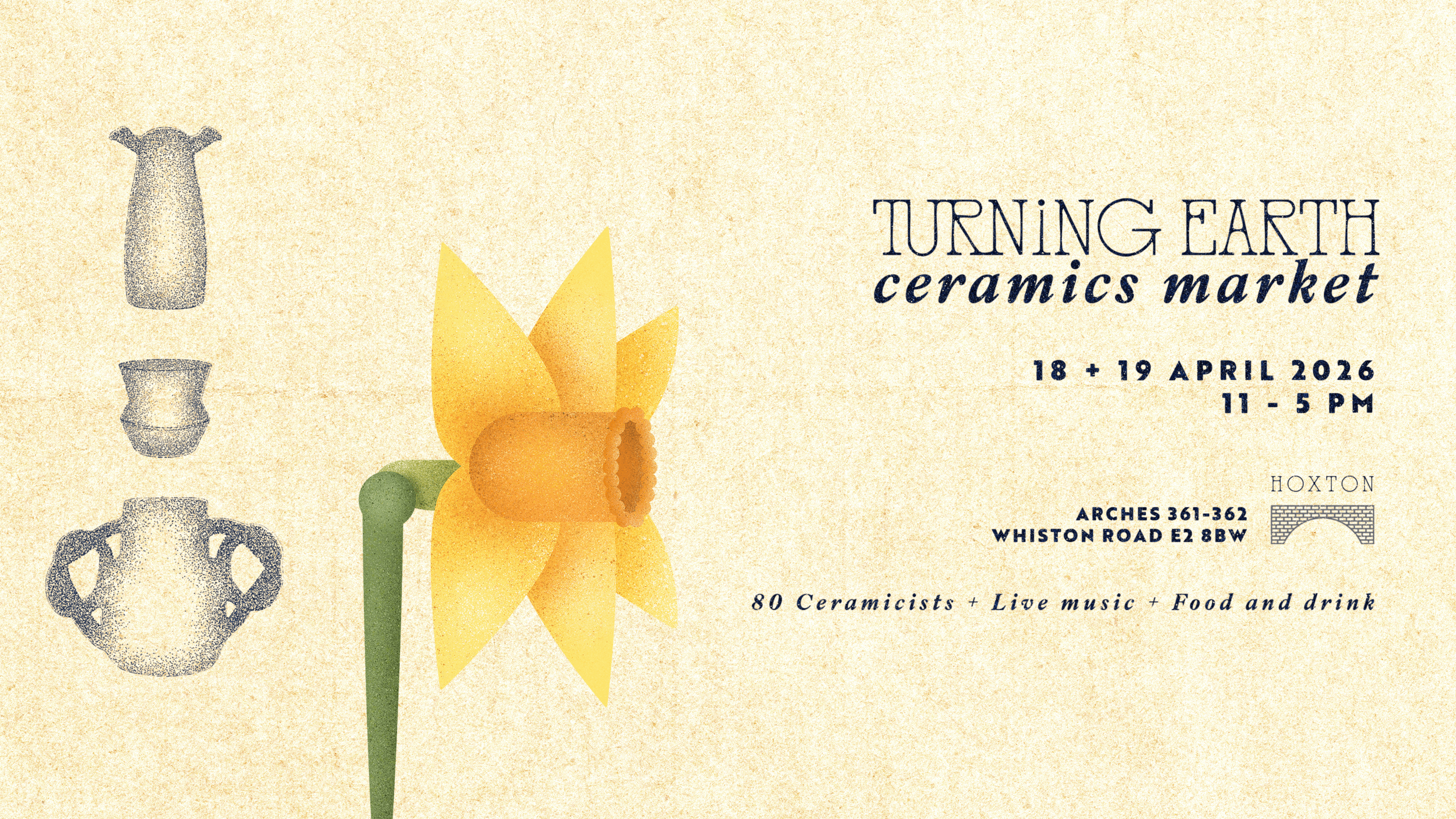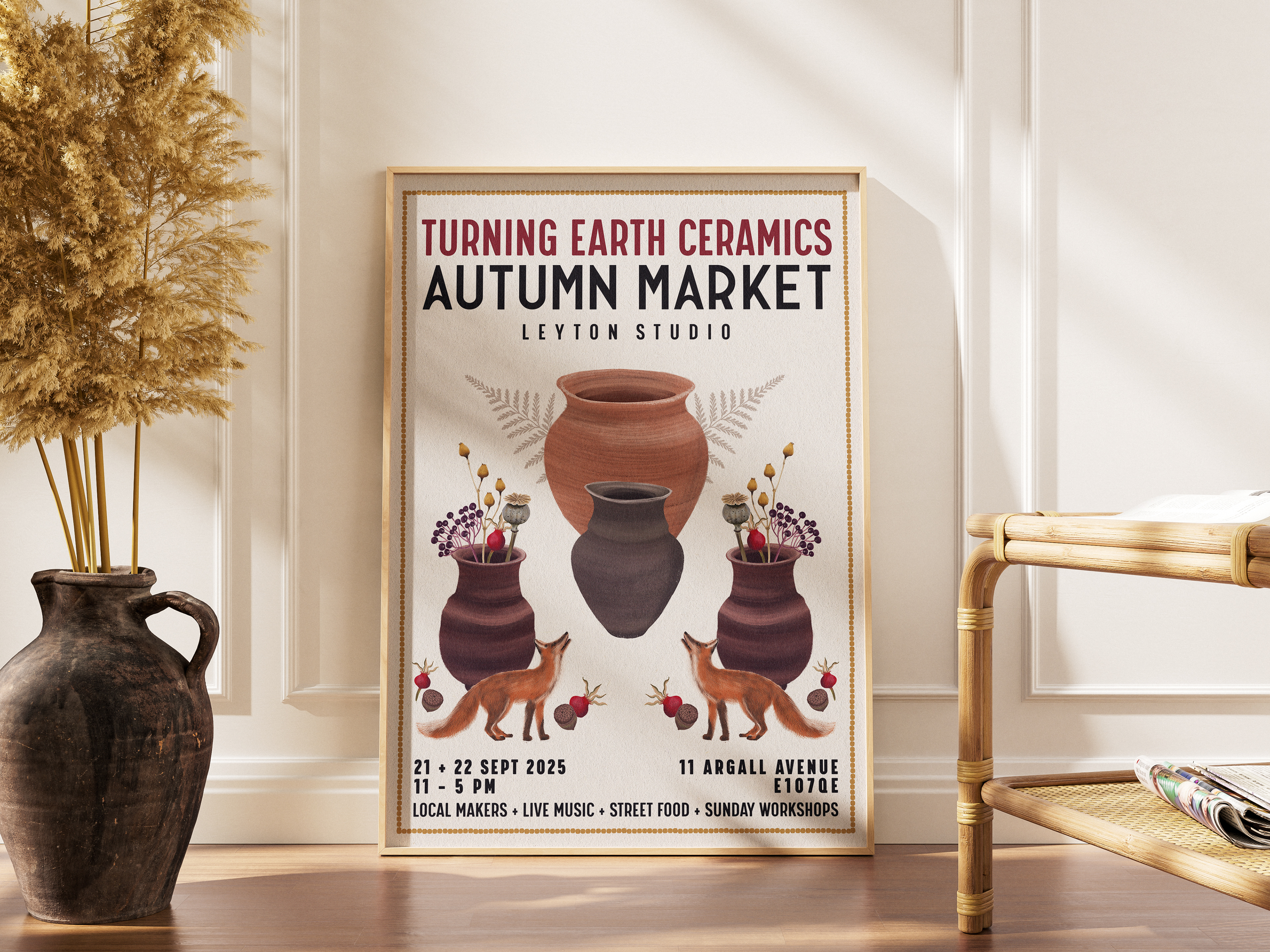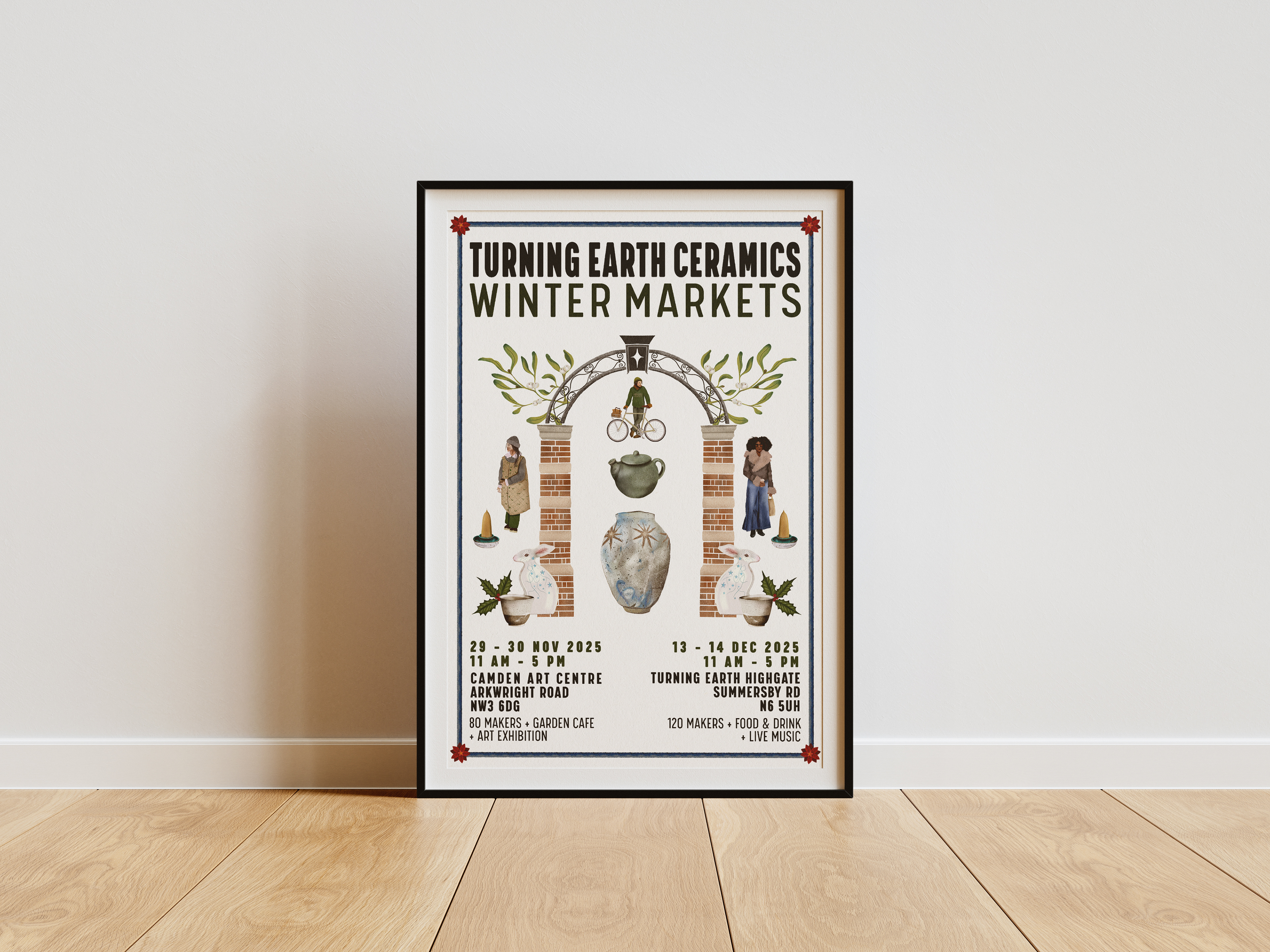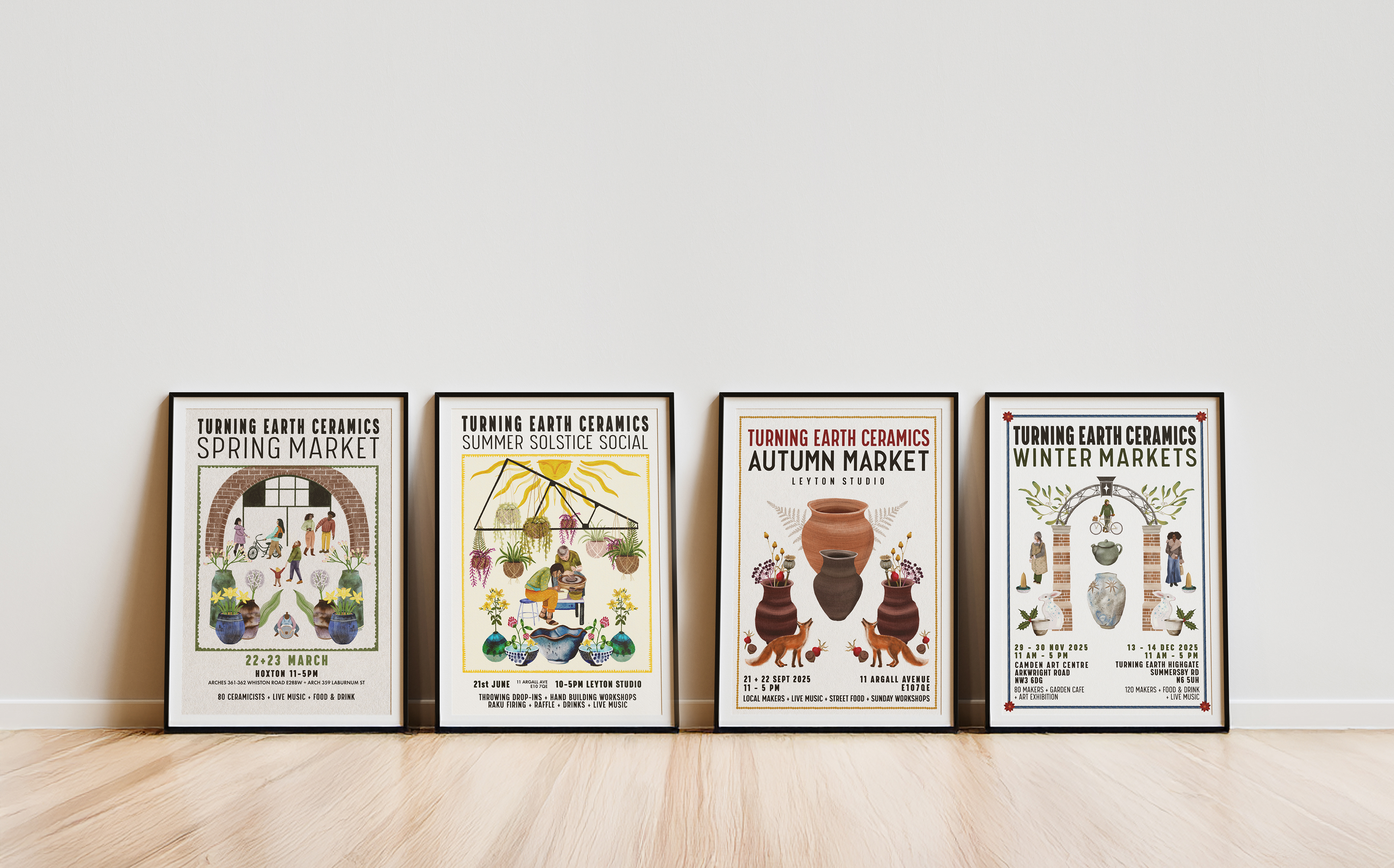 I was approached by Turning Earth Ceramics (London) to design an event poster for an upcoming spring maker’s market. The idea was to depict the market day in spring so I chose to illustrate some of the florals key to that time of the year and some of the ceramic pieces that were made in the Turning Earth studios.